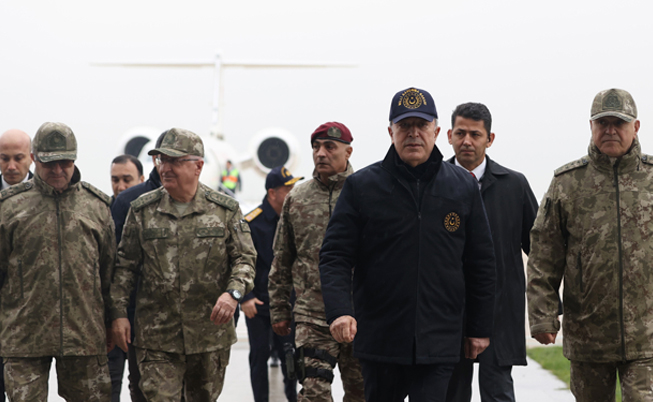 Hatay Havalimanı'nda 2. Ordu Komutanı Orgeneral Metin Gürak ve öteki yetkililer tarafından karşılanan Akar, beraberindeki komutanlarla Bahar Kalkanı Harekat Bölgesi Sektör Komutanlığına geçti.