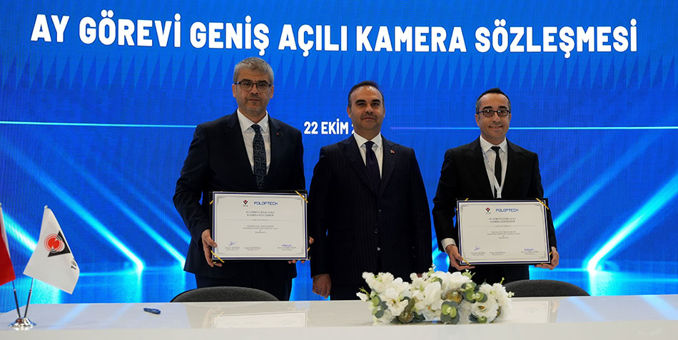 Ay Görevi’nin en önemli bileşenlerinden biri olan geniş açılı kamera sistemi için imzalanan bu sözleşme, SAHA EXPO’da düzenlenen törenle resmiyet kazandı. İmza töreninde, Sanayi ve Teknoloji Bakanı Mehmet Fatih Kacır, Sanayi ve Teknoloji Bakan Yardımcısı Muhammed Kasım Gönüllü, TÜBİTAK Başkanı Prof. Dr. Orhan Aydın, TÜBİTAK Uzay Teknolojileri Araştırma Enstitü Müdürü M. Mehmet Nefes, Poloptech Genel Müdürü Ali Şimşek Tekerek ve Poloptech Teknoloji Direktörü Özgür Selimoğlu ile Polat Holding Sanayi, Teknoloji ve Hizmetler Grup Başkanı Fikret Nas yer aldı.