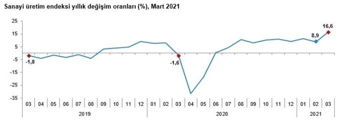 Ekonomik büyümenin öncü göstergelerinden olan sanayi üretim verisini açıkladı. Buna göre sanayi üretimi aylık bazda aylık %0,7, yıllık bazda ise %16,6 artış kaydederek, güçlü seyrini sürdürdü.