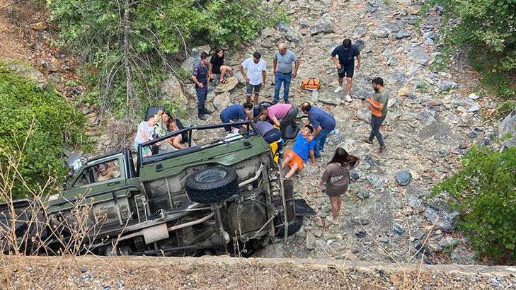 Turistlerin bulunduğu M.Z. yönetimindeki 07 AAS 034 plakalı safari cipi, virajda sürücüsünün direksiyon kontrolünü yitirmesi sonucu şarampole devrildi.