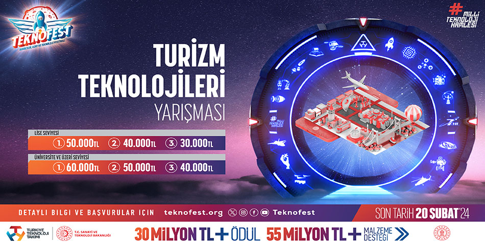 Başvuruların 20 Şubat 2024 tarihine kadar devam ettiği yarışmaya Türkiye ve yurt dışında öğrenim gören, lise, üniversite, yüksek lisans ve doktora öğrencileri katılabiliyor. Lise ve üniversite öğrencilerinin iki ayrı kategoride değerlendirildiği Turizm Teknolojileri Yarışmasında lise seviyesinde birincilik ödülü 50.000 TL, ikincilik ödülü 40.000 TL, üçüncülük ödülü ise 30.000 TL’lik para ödülünden oluşuyor. Üniversite ve üzeri seviyede takımlarda da birincileri 60.000 TL, ikincileri 50.000 TL ve üçüncüleri 40.000 TL değerinde para ödülü bekliyor.