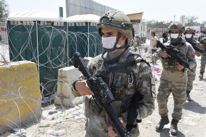 35 dereceyi aşan sıcaklık ve yoğunluktan dolayı zor anlar yaşayanlara su ve yiyecek dağıtan Türk güvenlik güçleri, aynı zamanda havalimanı kontrol noktalarında ülkeden ayrılmak isteyenlerin pasaport ve uçuş izinlerine dair kontroller de sürüyor.