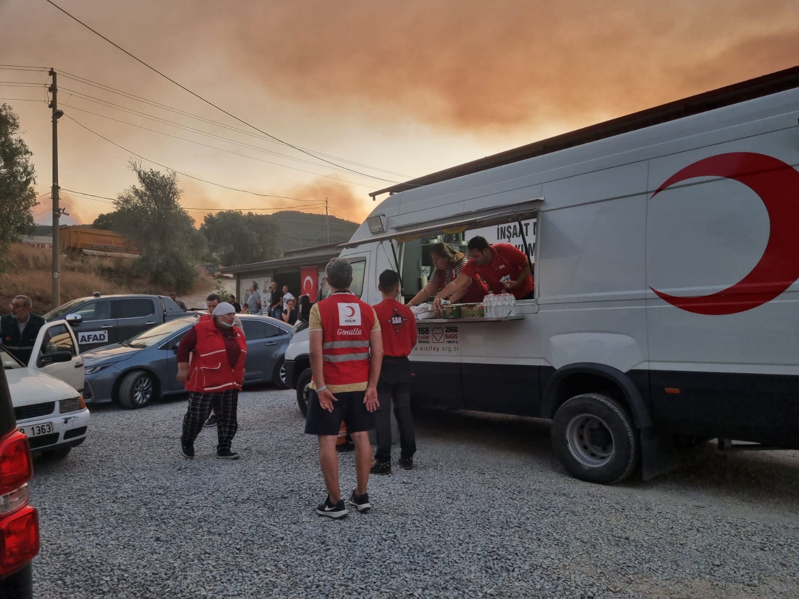 Yangınla mücadele ekipleri ve yangından etkilenen vatandaşları yalnız bırakmayan Türk Kızılay, olası yangınlara karşı teyakkuz halinde çalışmayı sürdürüyor.