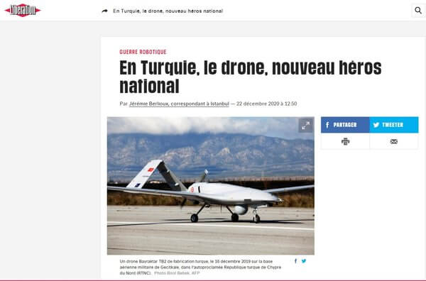 Fransız Liberation gazetesi tarafından yapılan bir haberde, Türkiye tarafından geliştirilen SİHA'ların başarısına yer verildi. Baykar şirketi tarafından geliştirilen Bayraktar TB2 İHA ve SİHA'ların, Türkiye'nin büyüyen bağımsızlığının ve gücünün yükselişe geçmesinin sembolü haline geldiği belirtilen haberde, Bayraktar TB2 SİHA'ların güvenilir teçhizatlar olduğu ve deneyimli Türk ordusu tarafından bizzat kullanıldığı ifade edildi.