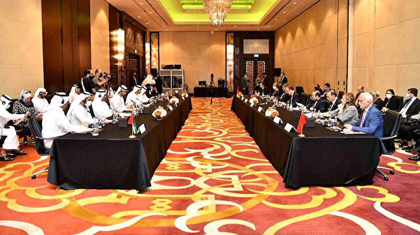 Açıklamada görüşlerine yer verilen DEİK Başkanı Nail Olpak, Kasım 2021'de Ticaret Bakanı Mehmet Muş'un katılımıyla düzenledikleri Türkiye-BAE İş Forumu'nda ve sonrasındaki yuvarlak masa toplantısında yaptıkları görüşmelerle iş birliklerini hangi alanlarda yoğunlaştırabileceklerini konuştuklarını, ardından BAE'deki karşı kanat kuruluşun başkanıyla İstanbul'da bir araya geldiklerini bildirdi.