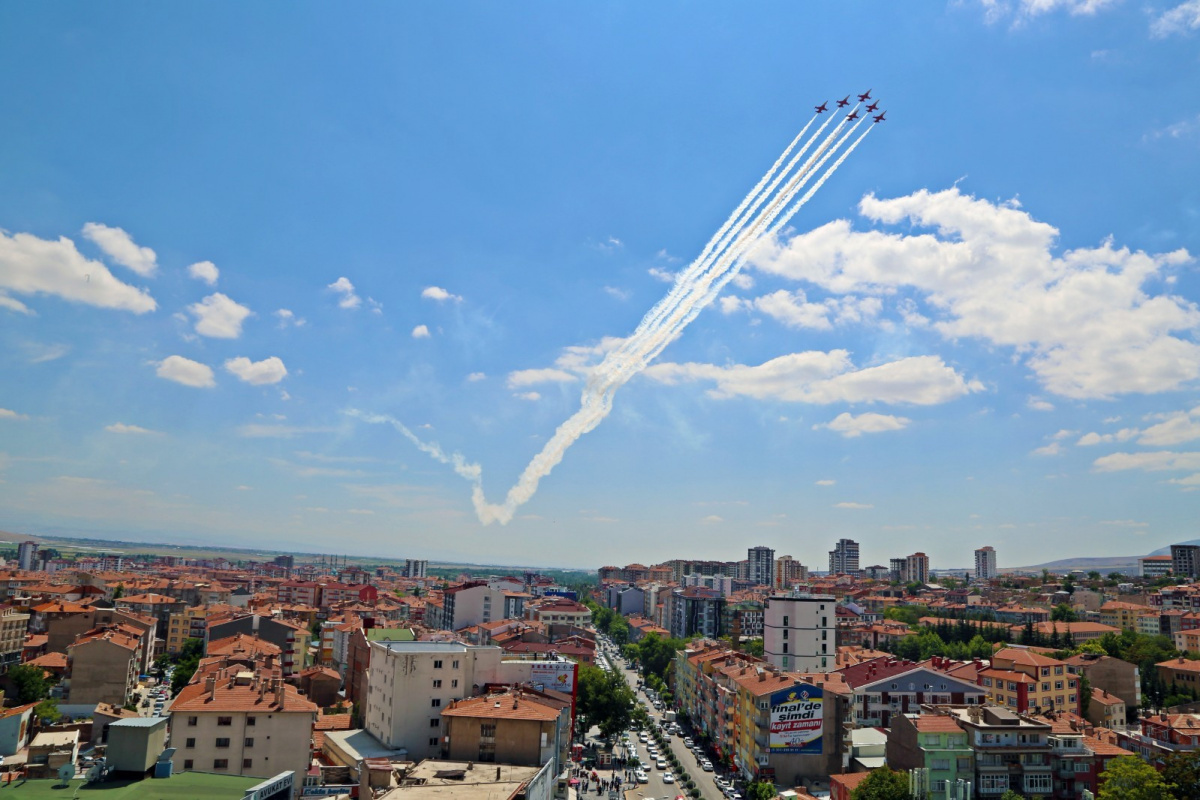 Valilik, belediye ve Niğde Ömer Halisdemir Üniversitesi'nin tarafından davet edilen 6 uçaktan oluşan tim, selamlama uçuşunda Niğde semalarına ay yıldız çizdi.