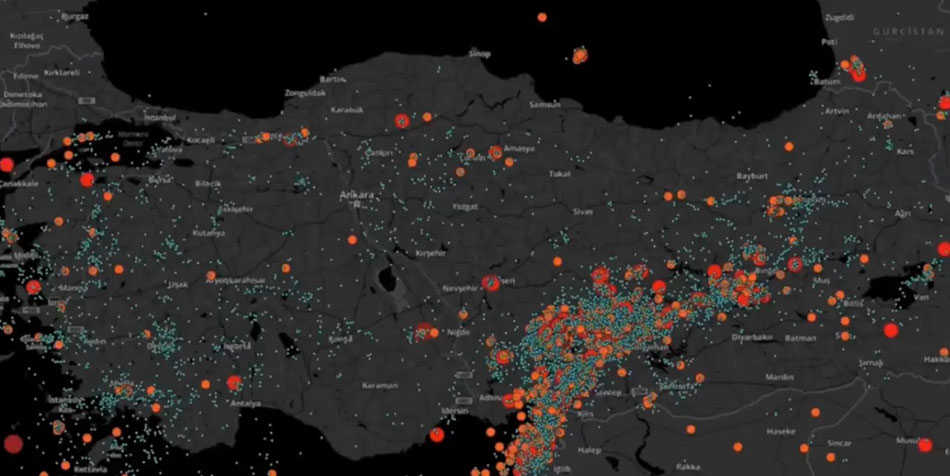 AFAD'ın sosyal medya hesabından yapılan paylaşımda, Türkiye ve yakın çevresinin 6 Şubat 2023 ile 6 Şubat 2025 tarihleri arasındaki deprem aktivitesini gösteren video paylaşıldı.