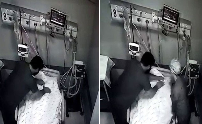 Görüntülerde, biri kadın biri erkek iki yoğun bakım hemşiresinin, cihazlara bağlı olarak bilinçsizce yatmakta olan erkek hastanın çarşafla yüzünü kapatıp, elleriyle ağzını ve boğazını sıktıkları, parmaklarıyla gözüne baskı uyguladıkları görüldü.