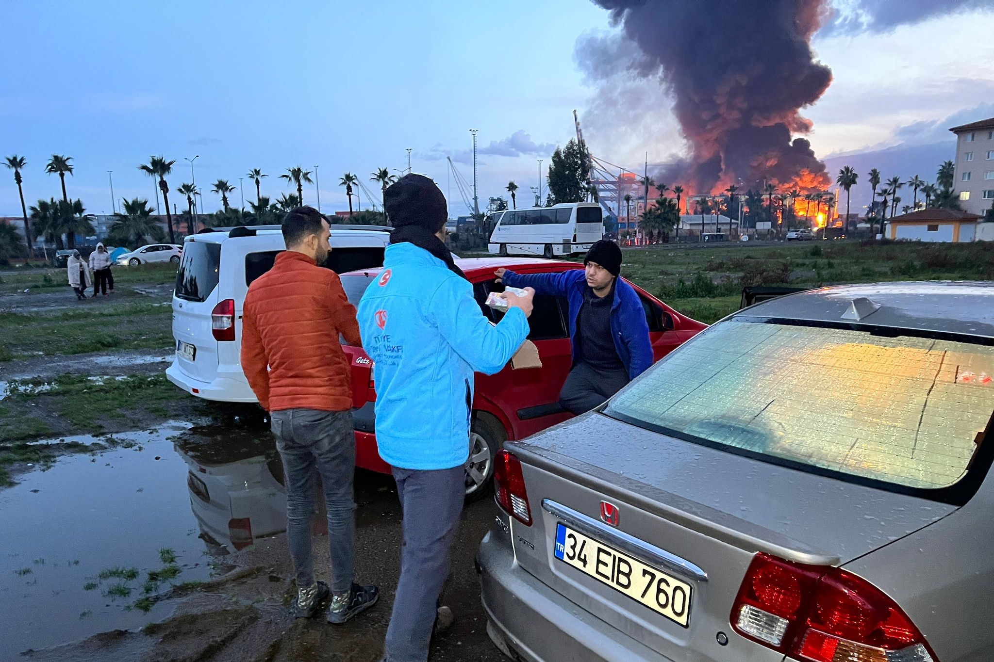 AFETZEDELERE VE KURTARMA EKİPLERİNE İKRAMLARDA BULUNUYOR