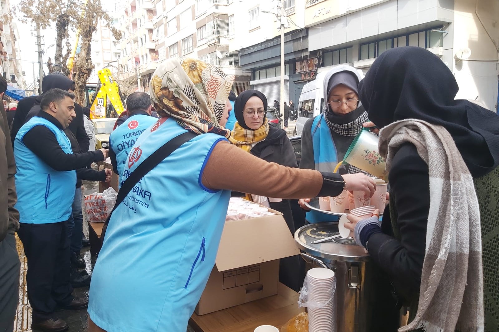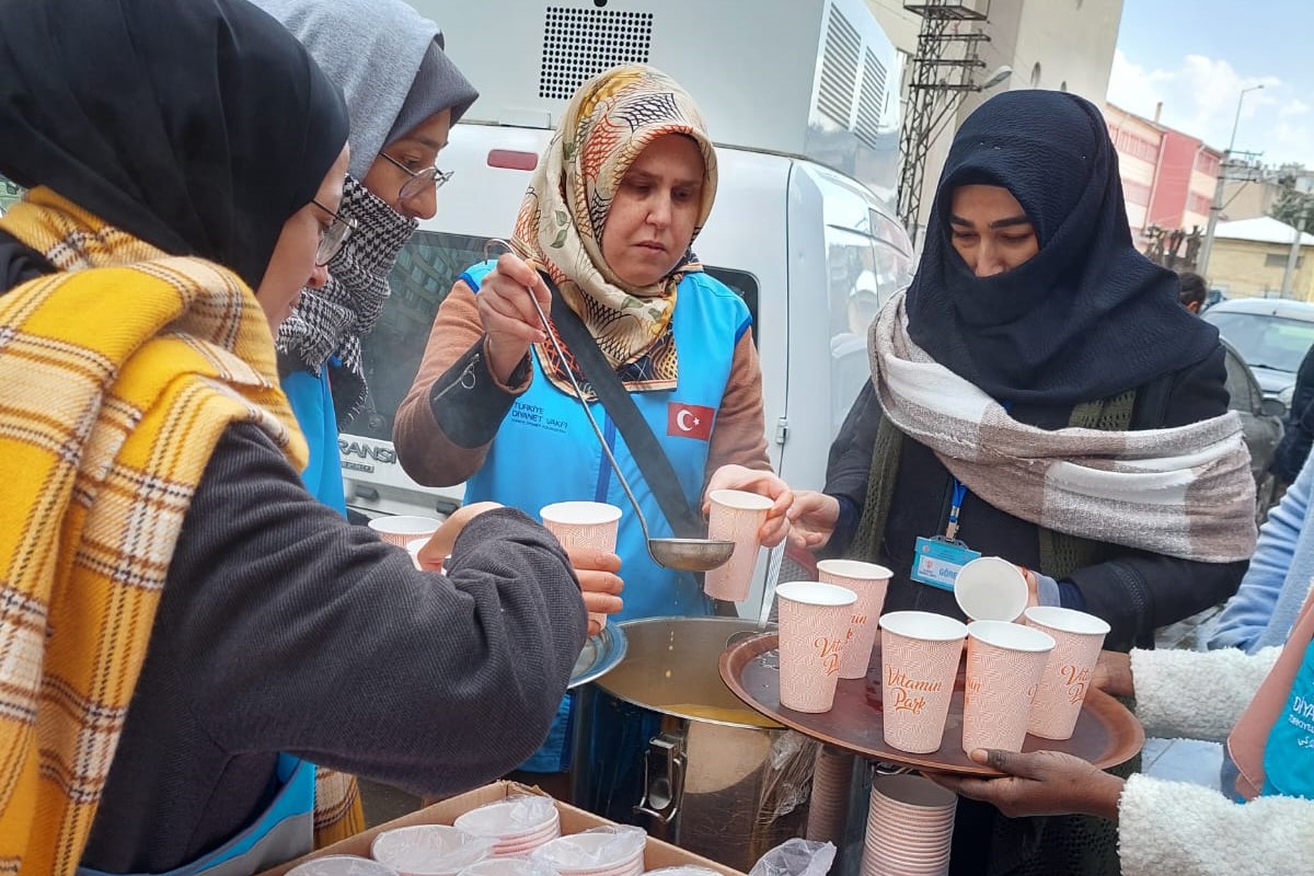 TDV'nin Türkiye'de AFAD tarafından “Beslenme Akreditasyon Sertifikası” alan ilk sivil toplum kuruluşu olduğunu belirten Turan, “Deprem bölgelerinde görevli ve gönüllülerimiz afetzedelere, sahada zorlu şartlar altında arama-kurtarma yapan ekiplere sürekli olarak sıcak çorba, yemek ve çeşitli ikramlarda bulunuyor. Devlet ve millet el ele vererek yaraları sarmaya devam ediyoruz” ifadelerini kullandı.