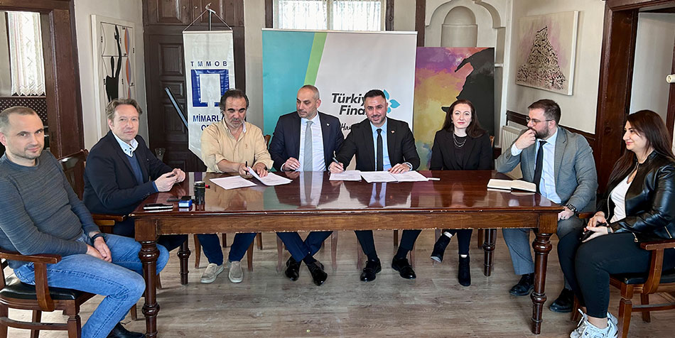 Türkiye’nin üretimine ve ülke ekonomisine katkı sağlamak amacıyla bugüne kadar farklı meslek grupları ile iş birlikleri yapan Türkiye Finans şimdi de Ege Bölgesi’nin önemli meslek odalarından TMMOB Mimarlar Odası Afyonkarahisar İl Temsilciliği ve TMMOB İnşaat Mühendisleri Odası Afyon Temsilciliği ile protokol imzaladı. Gerçekleşen protokol törenine Türkiye Finans Afyon Şube Müdürü Hüseyin Şahin, Türkiye Finans Marmara Perakende Bölge Müdürü Ömer Faruk Sapan, TMMOB Mimarlar Odası Afyonkarahisar İl Temsilciliği Başkanı Ferhun Sümer ve TMMOB İnşaat Mühendisleri Odası Afyon Temsilciliği Başkanı Ahmet Neoldum katıldı.