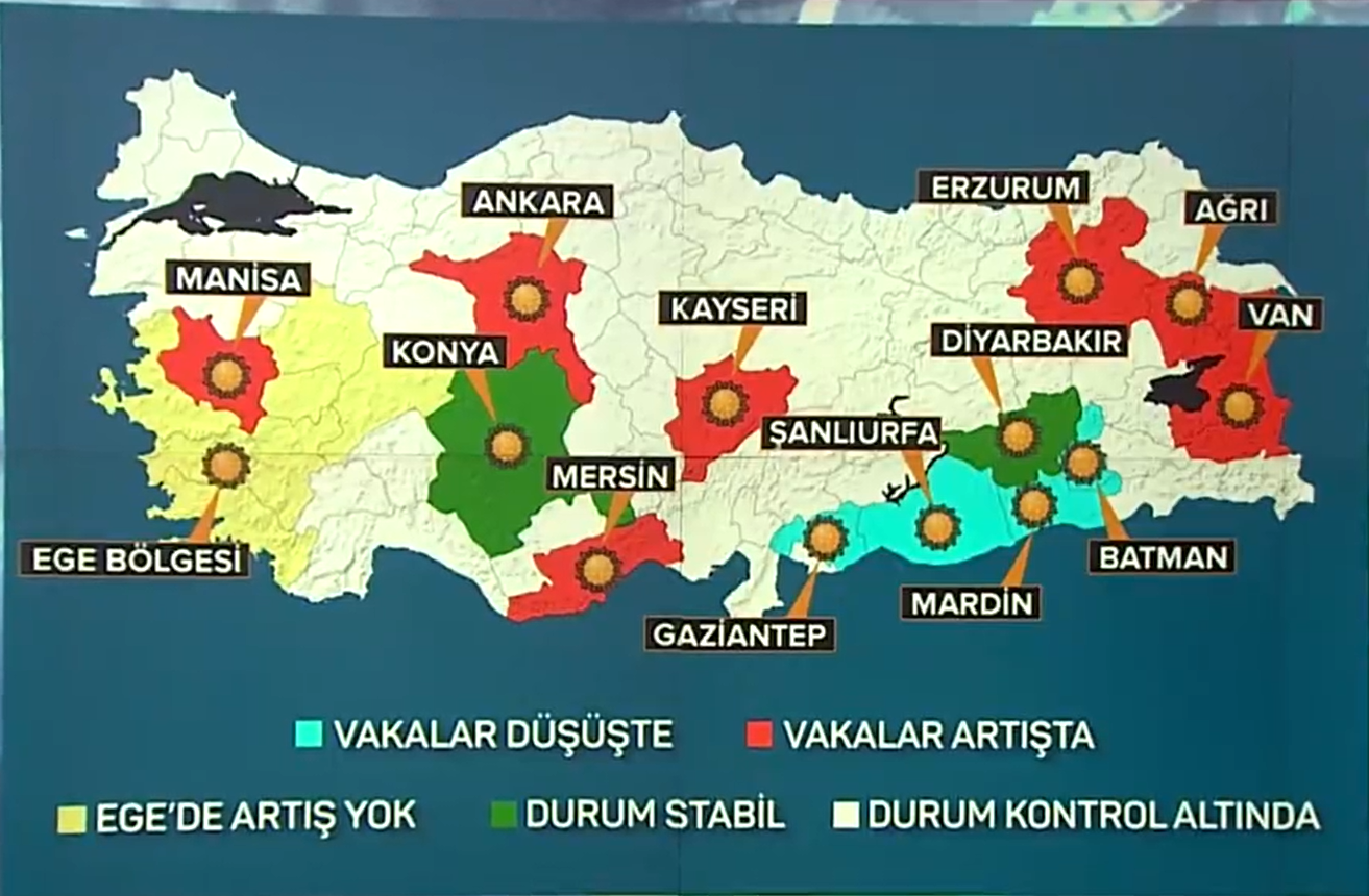 Geçtiğimiz günlerde vaka sayısının artışa geçtiği Diyarbakır'da durum kontrol altına alındı. Diyarbakır ve Konya, durumu stabil olan iller arasında yer aldı.