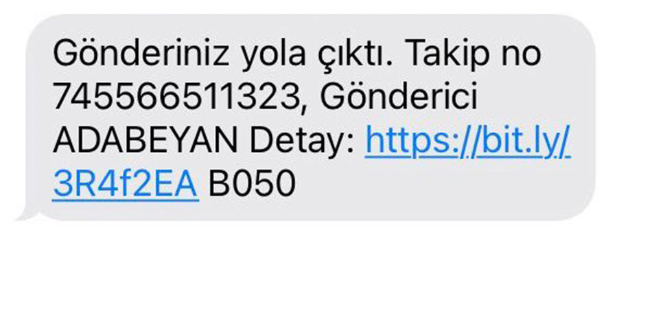 Milyonlarca cep telefonu kullanıcısına bu sabah saatlerinde bir alışveriş sitesinin de ismi ve uygulaması taklit edilerek "SMS ile gönderilen Adabeyan kargo gönderiniz yola çıktı, kargo takip '745566511323' numarası" şeklindeki mesaj tedirginliğe yol açtı.