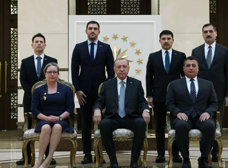 Lillian'ın bazı Büyükelçilik mensuplarını Cumhurbaşkanı Erdoğan'a takdiminin ardından hatıra fotoğrafı çektirildi.