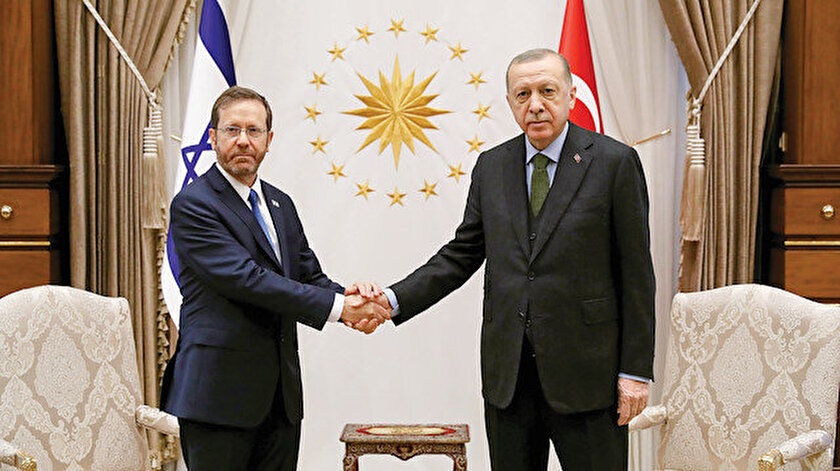 İsrail’in Mavi Marmara baskını ve Filistin’deki saldırgan politikası nedeniyle uzun süredir krizde olan ikili ilişkilerde yeni bir dönem başlıyor. İsrail Cumhurbaşkanı Isaac Herzog, 14 yıl sonra Türkiye’yi ziyaret eden ilk İsrail Cumhurbaşkanı oldu. Erdoğan ortak açıklamada, “Bölgemizde barış, huzur ve birlikte yaşama kültürünün yeniden hakim kılınmasına katkı sağlamak bizim elimizde” dedi. Cumhurbaşkanı Erdoğan’ın açıklamaları şöyle: