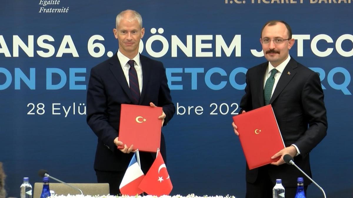 Ticaret Bakanı Mehmet Muş , Türkiye - Fransa 6'ıncı Ortak Ekonomik ve Ticari İşbirliği Komitesi (JETCO) toplantısı imza törenine katıldı. Fransa Dış Ticaret ve Yatırım Bakanı Franck Riester'in de katıldığı toplantıda Türkiye'nin, Fransa ile ilişkilerini uzun vadeli gördüklerini kaydeden Bakan Muş," 6'ıncı dönem JETCO protokolü ikili ticaret ilişkilerinde karşılıklı yatırımlara, üçüncü ülkelerle iş birliğine, sürdürülebilir tedarik zincirlerini ve Avrupa Birliği Yeşil Mutabakatında, enerji, tarım, ulaştırma, çevre ve şehircilik kalanında iş birliğine kadar pek çok farklı alanı kapsayan konulara ilişkin son derece yapıcı müzakerenin ve mutabakatın yansımasıdır" dedi. Muş, Türkiye ve Fransa arasında Ortak Ekonomik ve Ticari İş birliği Komitesi (JETCO) mutabakat zaptının da imzalandığını duyurdu.