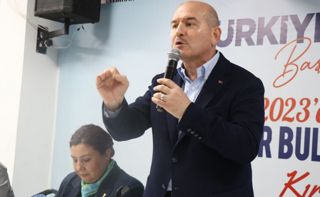 "2023 seçim akşamı ne olacak biliyor musunuz? Bugün o Tayyip Erdoğan'a çelme takmak isteyenler, o büyükelçiler, o başka ülkeler diyecekler ki özel kalemlerle 'Türkiye Cumhurbaşkanını Tayyip Erdoğan'ı bana bir bağlar mısınız?' Onlar sıraya girecekler ve Tayyip Erdoğan'ı tek tek tebrik etmek isteyecekler" diyerek muhalefete yüklenen Bakan Soylu konuşmasını şu şekilde sürdürdü; "Her türlü iftirayı, her türlü yalanı, her türlü desteksiz atışı ortaya koyan bir muhalefet ile karşı karşıyayız. Bunu ilk kez yaptıklarını düşünmeyin. Türkiye'ye kimyasal silah yalanını atanlar bunlar. Türk silahlı kuvvetleri, şanlı ordumuzu, 2 bin yıllık ordumuzu bir iftirayla karşı karşıya bırakıyorlar. Türkiye Cumhuriyeti Devleti'nin jandarmasını, polisini cari açığı kapatmak için uyuşturucu ticareti yapan bir iftirayla suçluyorlar. Sonra bana kızıyorlar. Ne demişim ben? 'İddianı ispat etmezsen Kılıçdaroğlu şerefsizdir' demişim. Yine diyorum. Hadi iddianı ispat et. Bu ülkeye iftira ediyorsunuz. Yalan dolan bir vizyon oluşturmana gerek yok. Bu ülkeye, bu devlete iftira ediyorsunuz. Bunlar gençliğinde de böyleydi. Devlete iftira ederlerdi, sabah akşam askere polise küfrederlerdi. Bugün meclisin çatısı altındalar, aynı anlayışı ortaya koyuyorlar. HDP ile kol kolalar, masanın altındalar. Sen bu milleti ne zannediyorsun? Bu millet adam olanı da olmayanı da bin kilometre öteden tanır. Onun için 2023 seçim akşamı ne olacak biliyor musunuz? Bugün o Tayyip Erdoğan'a çelme takmak isteyenler, o büyükelçiler, o başka ülkeler diyecekler ki özel kalemlerle 'Türkiye Cumhurbaşkanını Tayyip Erdoğan'ı bana bir bağlar mısınız?' Onlar sıraya girecekler ve Tayyip Erdoğan'ı tek tek tebrik etmek isteyecekler Allah'ın izniyle."