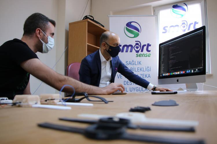 Ürettikleri akıllı saat ve bileklik yardımıyla hastalıkların teşhisi ve tespit edilmiş hastalardan alınan verileri sağlık sistemine gönderebildiklerini ifade eden Doç. Dr. Genç, "Bu akıllı bileklik aracılığıyla veri gönderiyoruz.