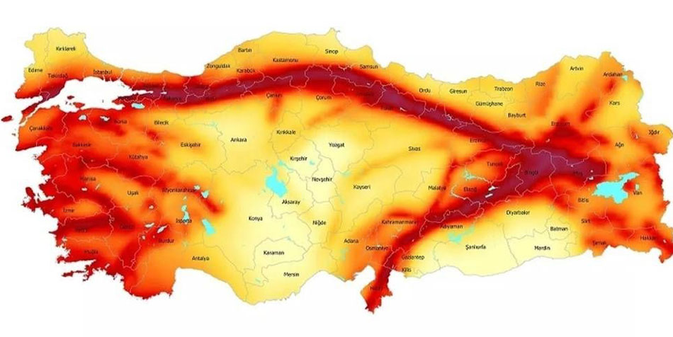 MTA Diri Fay Haritası'na göre ise 30 il birinci derecede riskli bölgeler arasında yer alıyor.