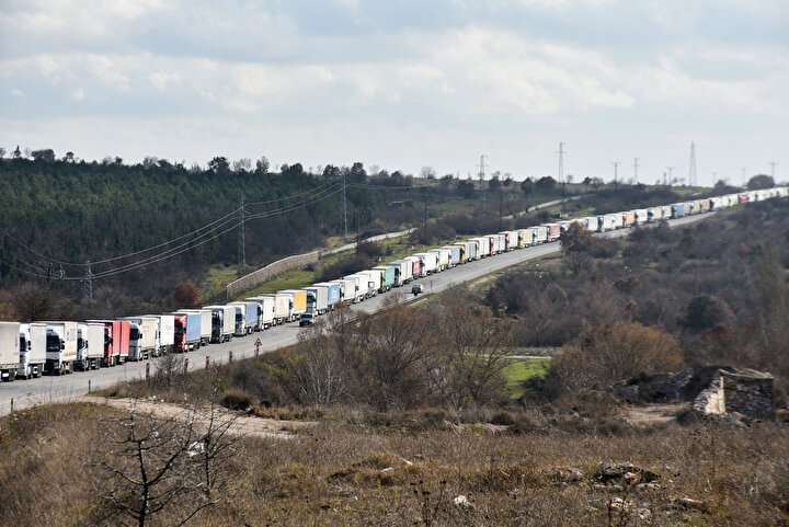Selçuk Karaaslan ise, "Yaklaşık 2 gündür sıradayız. Şu anda zaten 9 kilometre kaldı. Bugün bile varabileceğimiz şüpheli. Lavabo yok, yemek yok, gece gündüz uyku yok. 22 kilometreden sıraya girdim. Bugün bile park yerine varacağımız meçhul. Normalde bu malı cuma günü teslim etmem gerekiyordu ama bu gidişle zor" diye konuştu.