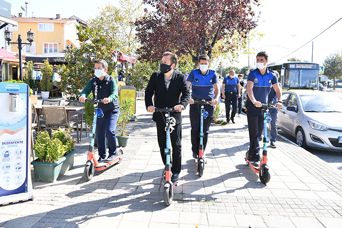 Yeni bir teknolojik cihazı denediklerini vurgulayan Başkan Yazıcı, son dönemlerde büyük trend olan elektrikli scooterların bundan böyle kullanılacağını da belirterek, "Fosil yakıtlara ihtiyaç duymadan, alternatif ihtiyaç kaynakları ile çevreye duyarlı olan bu tür aletler dünyada çok tutulan ve kullanılan durumda. Biz de belediyecilik hizmetlerini denetlemek ve kontrol edebilmek adına, belli mahallelerde ve merkez noktalarda bu ‘Bin Bin’ denilen elektrikli araçlar ile çalışacağız." ifadelerini kullandı.