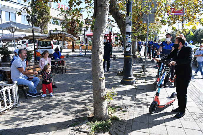 Koronavirüs denetimine scooterlarla çıkan zabıta ekiplerine Tuzla Belediye Başkanı Dr. Şadi Yazıcı da katıldı. "Bin Bin" projesi kapsamında koronavirüs denetimleri yapan ekipler ve Başkan Şadi Yazıcı'ya vatandaşlar büyük ilgi gösterdi.