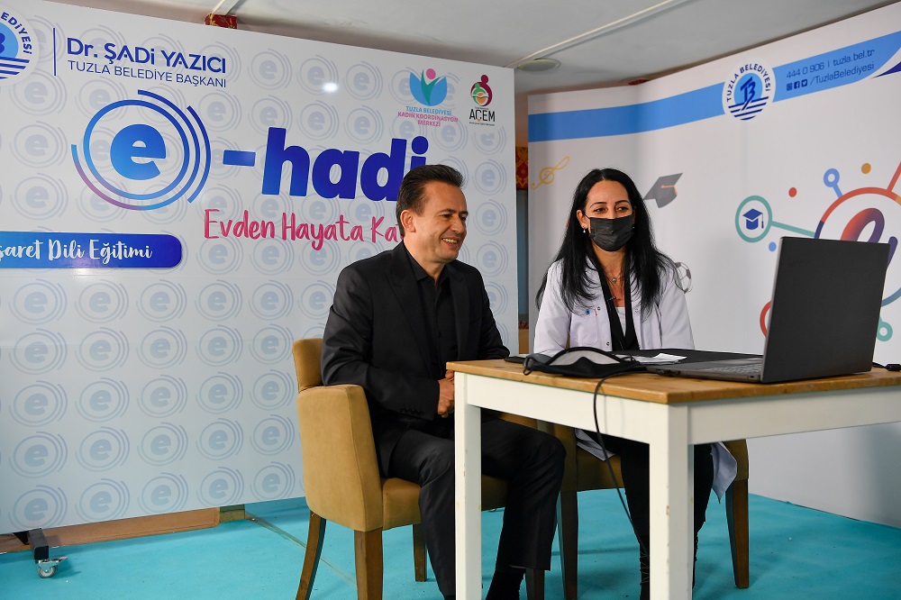 Tuzla Belediyesi'nin hayata geçirdiği "e-Hadi" adlı yeni nesil, çevrimiçi eğitim portalındaki online derslerde "İşaret Dili" eğitimine de yer verildi. İşitme engelli vatandaşlarla daha kolay bir şekilde iletişim kurulması amacıyla yapılan derslere ilgi oldukça yoğundu. İlk grup derslerine 21 öğrenci katılım gösterirken, son gününde de 3 Aralık Dünya Engelliler Günü için özel olarak bir ders gerçekleştirildi.