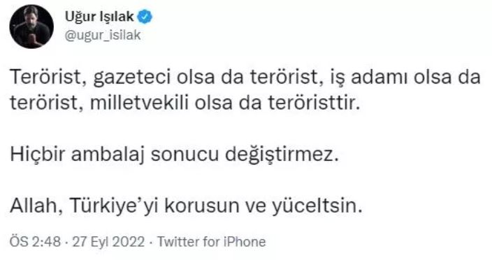Sanatçı Uğur Işılak’ta teröristin bir gazeteci olarak pazarlanmasına da tepki gösterdi.