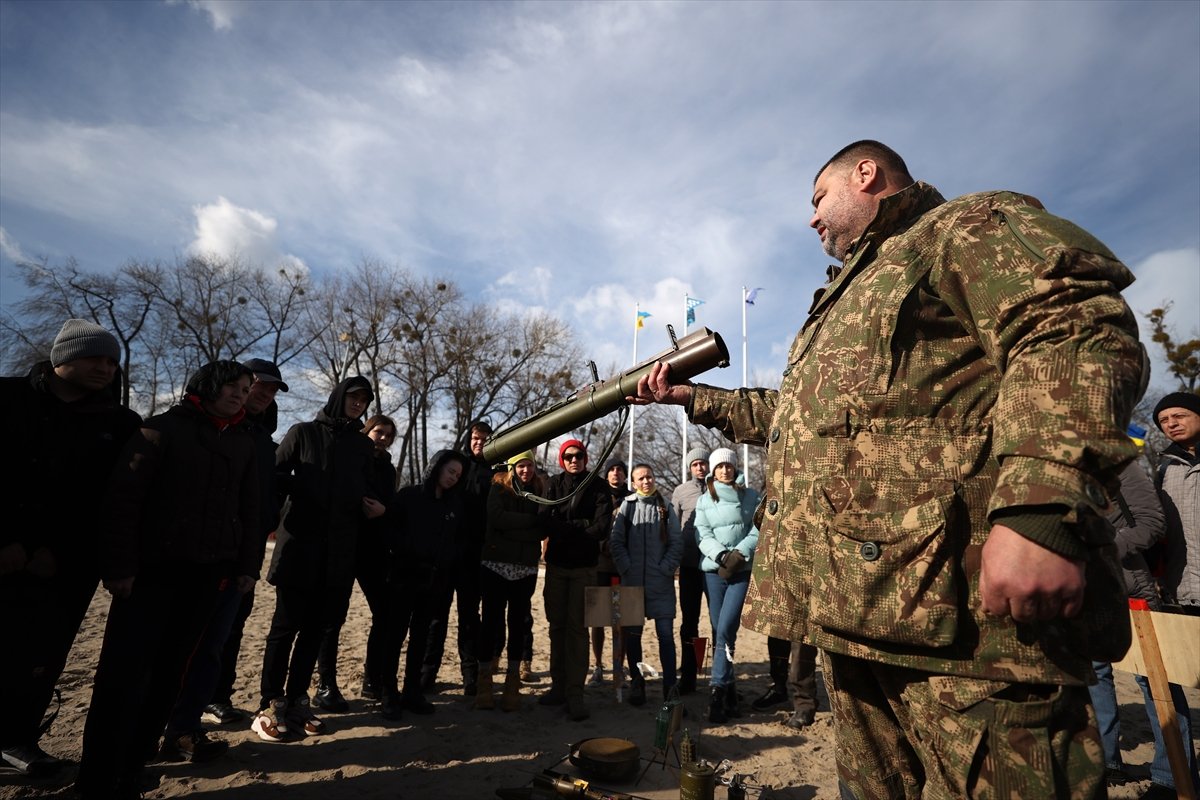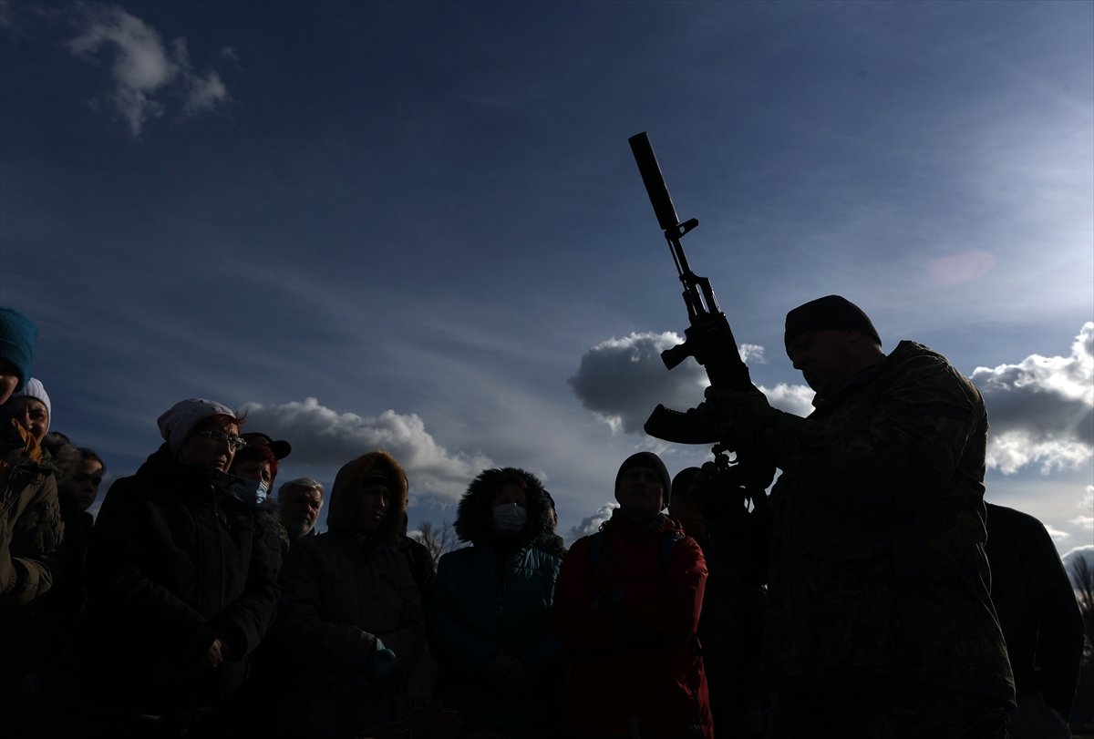Rus ordusunun muhtemel işgal girişimine karşı Ukrayna'nın başkenti Kiev'de eski askerler ve gönüllüler, sivil halka "temel askeri eğitim" veriyor.