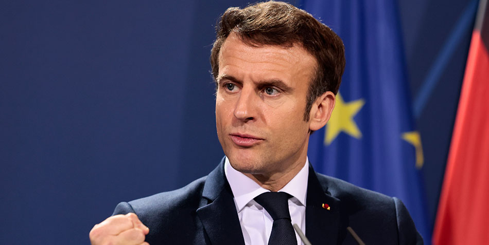 Macron "Bugün 'Asla, asla' diyen pek çok kişi, iki yıl önce 'Asla tank, asla uçak, asla uzun menzilli füze’ diyenlerle aynı kişiler” dedi.