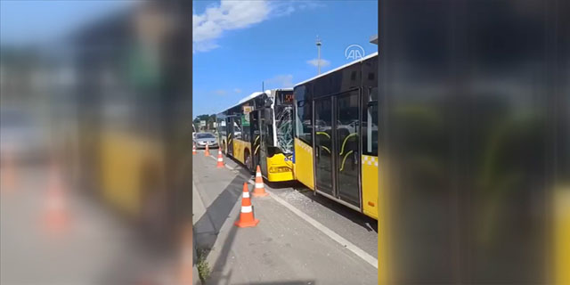 Ümraniye'de 3 İETT otobüsünün karıştığı zincirleme kaza nedeniyle araçlarda hasar oluştu.