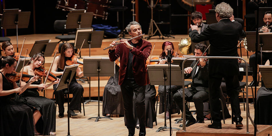 Olten Filarmoni Orkestrası, 19 Mart'ta İzmir Ahmed Adnan Saygun Sanat Merkezi'nde gerçekleşen sezonun altıncı konserinde müzikseverlere unutulmaz anlar yaşattı. Gecenin açılışı, Beethoven’ın Egmont Üvertür ile yapılırken, konserin ilerleyen bölümlerinde Wolfgang Amadeus Mozart’ın Flüt Konçertosu No. 2 Re Majör eserine yer verildi. Dünyaca ünlü Fransız flüt sanatçısı Julien Beaudiment, bu eserde solist olarak sahne aldı. Cem Mansur’un usta yönetimi ve Julien Beaudiment’in zarif flüt tekniğiyle birleşen bu performans, büyük bir beğeniyle karşılandı