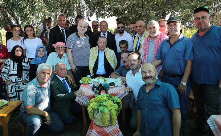 Cumhurbaşkanı Erdoğan, Manisa'da ilk olarak Şehzadeler ilçesine bağlı Güzelköy Mahallesinde Hasan Fehmi Tekoğlu ve Mehmet Tekoğlu'na ait çiftliğe giderek üzüm bağında hasat yaptı.