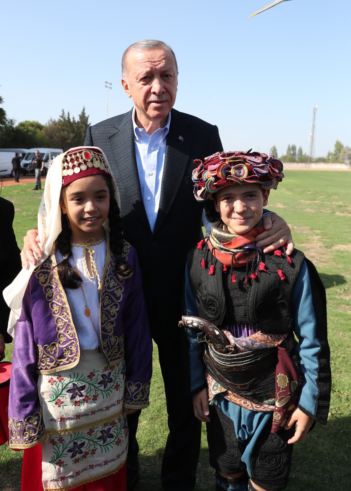 Manisa'ya toplu açılış töreni ve 2022 yılı kuru üzüm taban fiyatını açıklamak üzere helikopterle gelen Cumhurbaşkanı Recep Tayyip Erdoğan Manisa 19 Mayıs Stadyumuna iniş yaptı.
