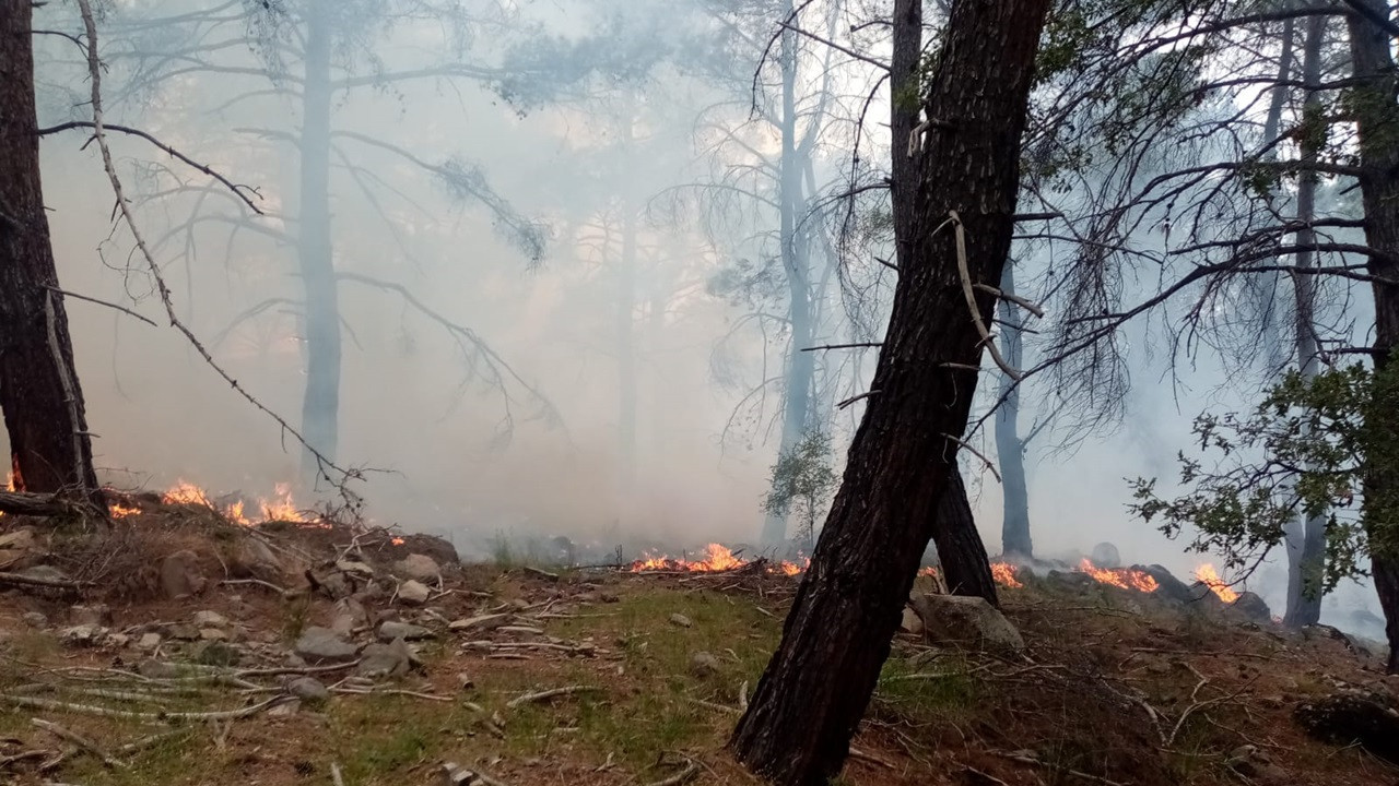 Ekipler, rüzgarın etkili olduğu bölgelerde alevleri kontrol altına almaya çalışıyor.