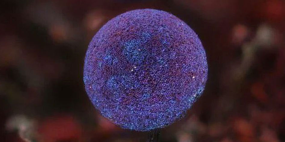 Üç parlak rengi karışık bir şekilde üzerinde toplayan ve parlak mor bir renge ulaşan Ametist Mantarı’nın disko topu görüntüsü, aslında içerisindeki küf sporlarının salınmasıyla oluşan bir balçığı ifade ediyor.