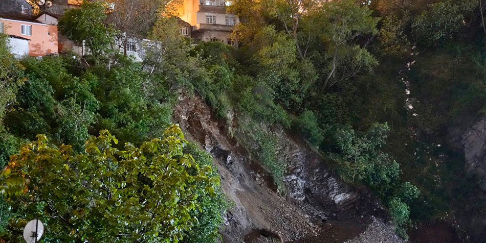 Şuana kadar bu bölgenin genelinde bir toprak kayması tespit etmedik. Burada daha önce tespit edilen riskli yapı olarak kayıtlarda olan, normalde taşınması ve yıkılması gereken, şimdiye kadarda hak sahipleri ile belediye arasında anlaşma olmadığı için taşınması geciken yapılar var.