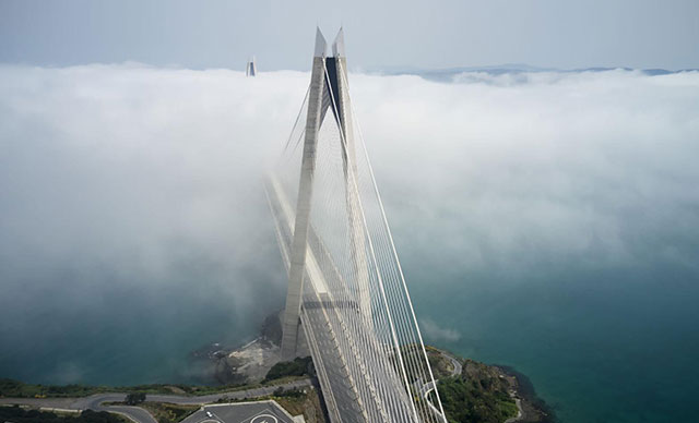İstanbul Valisi Ali Yerlikaya, sisin etkili olduğu Yavuz Sultan Selim Köprüsü'nün havadan çekilen görüntüleri ile boğazın yer aldığı videoyu sosyal medya hesabından paylaştı.