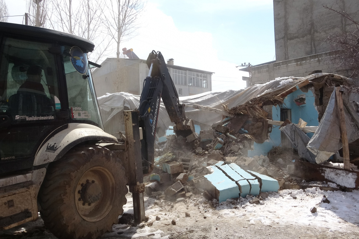 Göçmen kaçakçılığıyla mücadele ekiplerinin gözetiminde Van Büyükşehir Belediyesi ile İpekyolu Belediyesinin yardımıyla tespit edilen şok evler iş makineleriyle yıktırıldı.