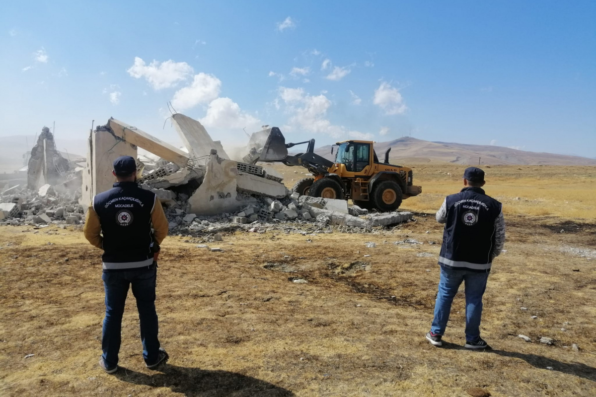 Açıklamada, “25 Eylül 2021 günü ilimiz İpekyolu ilçesi Hacıbekir Mahallesi'nde düzensiz göçmenlerin barındırılmasında kullanılan ve ‘şok ev' diye tabir edilen 5 adet içi boş metruk yapının Göçmen Kaçakçılığı ile Mücadele ve Hudut Kapıları Şube Müdürlüğümüz ekipleri nezaretinde yıkımı sağlanmıştır. Van Emniyet Müdürlüğü olarak ilimiz genelinde göçmen kaçakçılığıyla mücadele çalışmalarımız kararlılıkla devam etmektedir” denildi.