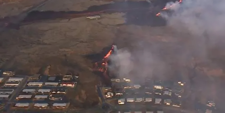 Son gelen bilgilere göre, lavlar nedeniyle kasabadaki bazı evler alev almış durumda.