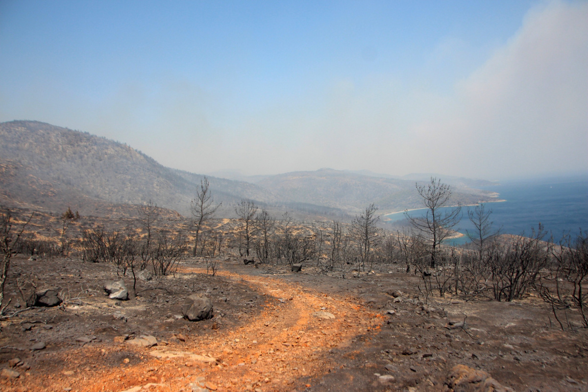 Yangının Bodrum'a verdiği hasar ise büyük oldu. Gökova Körfezi'nde mavi ile yeşilin birleştiği koyları ve tepeleri de etkisi altına alan alevler, cennet gibi bölgeleri kül rengine çevirdi. Yangında ne kadar alanın yandığı ise henüz tespit edilmedi.