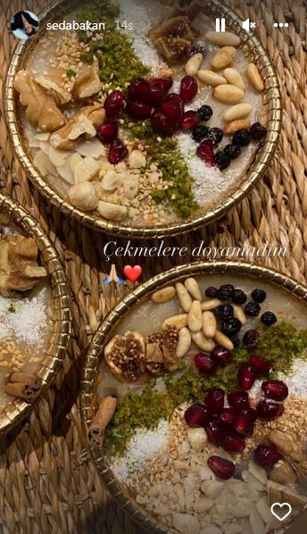 İnstagram hesabından yayınladığı fotoğraflara, “Çekmelere doyamadım” notunu düşen oyuncunun aşure kaseleri, lezzetli görüntüsüyle takipçilerinden de tam not aldı.”