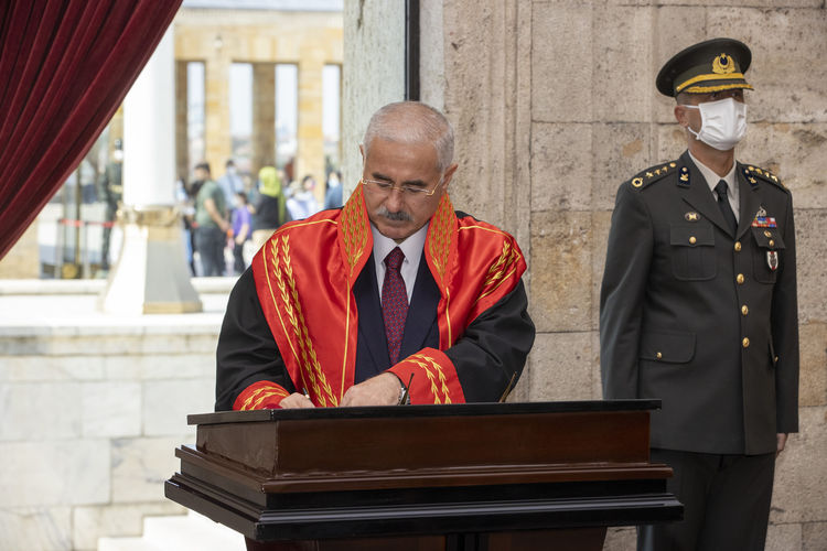 Yargıtay Başkanı Mehmet Akarca, Yargıtay Cumhuriyet Başsavcısı Bekir Şahin, Yargıtay Genel Sekreteri Fevzi Yıldırım ve Yargıtay üyeleri ile Aslanlı Yol'dan yürüyerek Büyük Önder Mustafa Kemal Atatürk'ün mozolesine geldi.