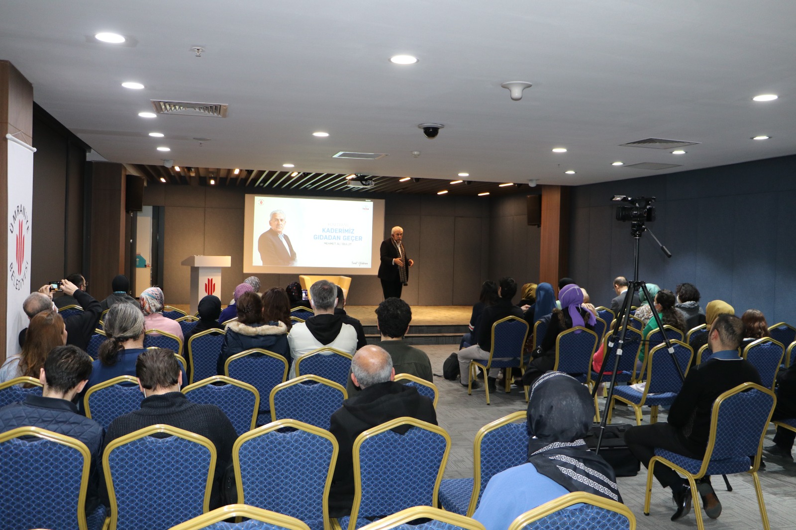 Mehmet Ali Bulut programda, insanın kaderinin tercih ettiği gıdalarla bağlantılı olduğunun altını çizerek, Hz. Adem ve Hz. Havva’nın hayatından kıssalar paylaştı. Bulut, beslenme şeklinin insanlar üzerindeki etkilerini örneklerle ele aldı. Konferans, dinleyicilerden büyük alkış aldı.