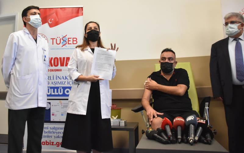 "TURKOVAC"ın faz 3 çalışmaları kapsamında bugün Kayseri Şehir Hastanesinde de gönüllülere uygulanmasına başlanmıştı.