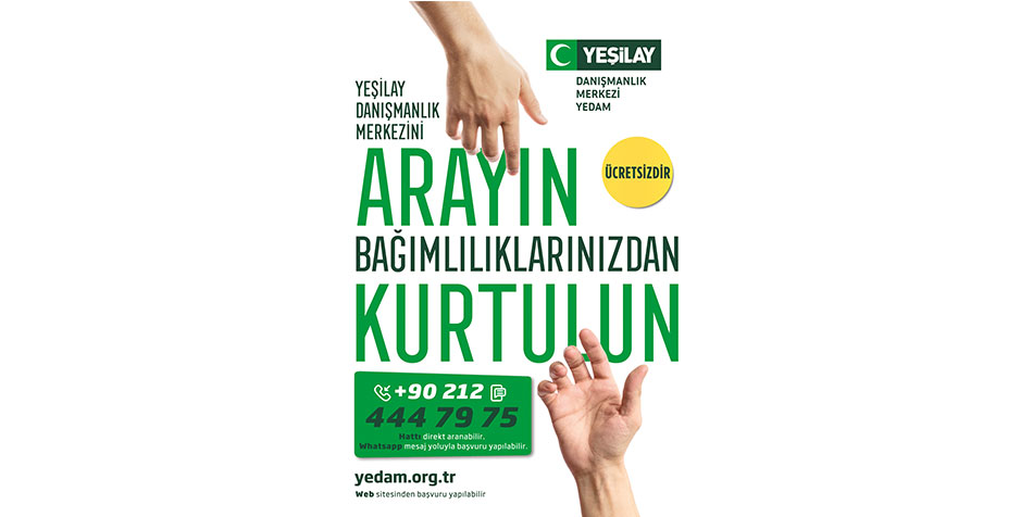 Türkiye’nin her yerinden ücretsiz ulaşılabilen ve yurt içinde 1 milyon 200 binin üzerinde çağrı alan YEDAM Danışma Hattı, 90 (212) 444 79 75 numaralı danışma hattıylayurt dışına da hizmet vermeye başladı. Yurt dışında yaşayan, Türkçe konuşan kişilerin, bağımlılık sorunlarıyla mücadele ederken genellikle dil bariyerleri, yerel destek sistemlerine erişim eksiklikleri ve yüksek danışmanlık ücretleri gibi zorluklarla karşılaştığını göz önünde bulundan Yeşilay, bu önemli hizmetini hayata geçirdi.