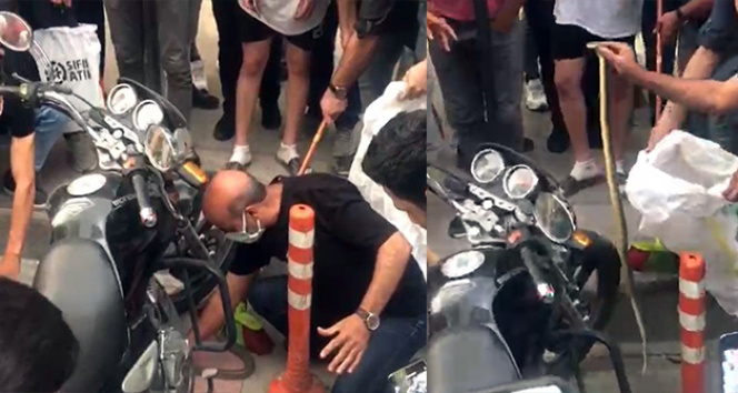 Olay, kentin en işlek caddesi olan Gazi Caddesinde meydana geldi. Edinilen bilgiye göre, bir motosikletin tekerine dolaşan yılanı gören vatandaşlar, yılana müdahale etti.