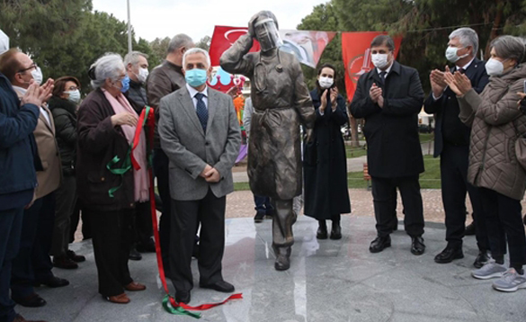 CHP'li İzmir Büyükşehir ve Karşıyaka Belediyesi'nin işbirliğiyle 14 Mart Tıp Haftası etkinlikleri kapsamında koronavirüs salgını ile mücadele sürecinde hayatını kaybedenler başta olmak üzere tüm sağlık çalışanlarının anısına Karşıyaka'da heykel yaptırdı.