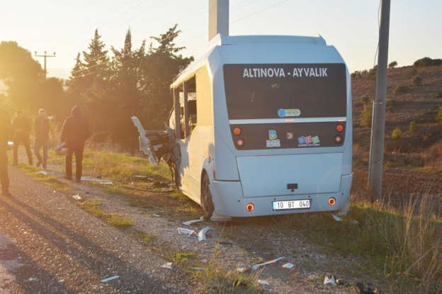 Kazada, sürücüler Kınay ve Kocadağlı ile 5'i öğrenci 8 yolcu yaralandı. Sağlık ekiplerince Ayvalık Devlet Hastanesi'ne kaldırılan yaralıların durumlarının iyi olduğu öğrenildi.